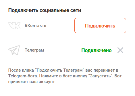 Обратите внимание, что вы можете подключить только личную страницу в Телеграм (по номеру телефона, который указан в профиле).