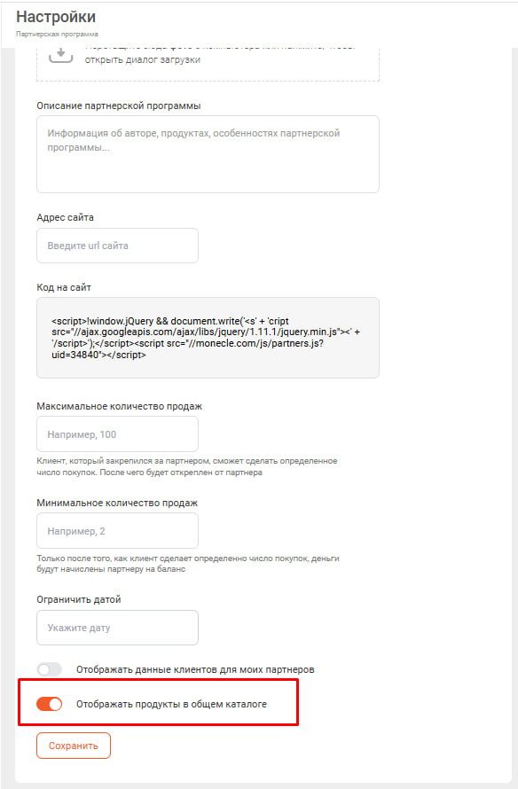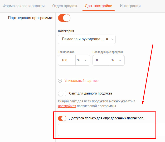- в настройках партнерской программы вы можете в целом скрыть все ваши продукты из общего каталога, при этом партнеры смогут получить свои ссылки только через вашу ссылку на ваш каталог
